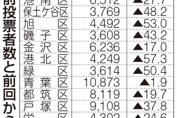 横浜市長選挙の期日前投票、前回比で4・5%減る 中間集計、終盤は混雑か 横浜市長選挙カナロコ by 神奈川新聞。