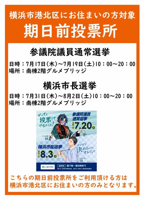 横浜市選挙管理委員会@yokohama_senkyo : "\本日から、参議院議員通常選挙の各区役所での期日前投票が始まりました📢各区の 期日前投票所の詳 "。