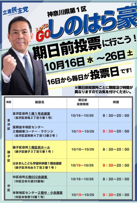 横浜市長選挙2025 期日前投票所はどこ?手ぶらでOK? - 柏原すぐる カシワバラスグル選挙ドットコム。
