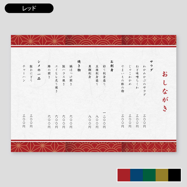 枠5A4横縦書きお品書き メニュー表 テンプレート無料「おしながき職人」。