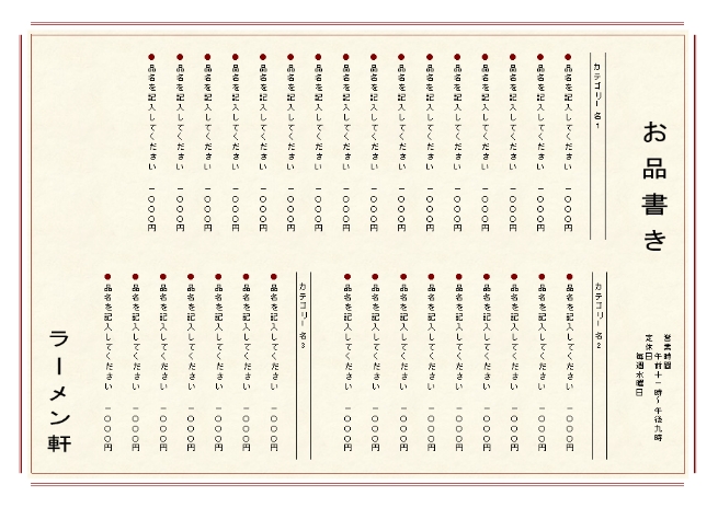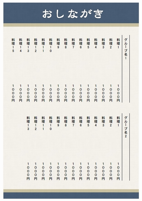 縦書きのメニュー表テンプレート・Word無料のビジネス書式テンプレート。