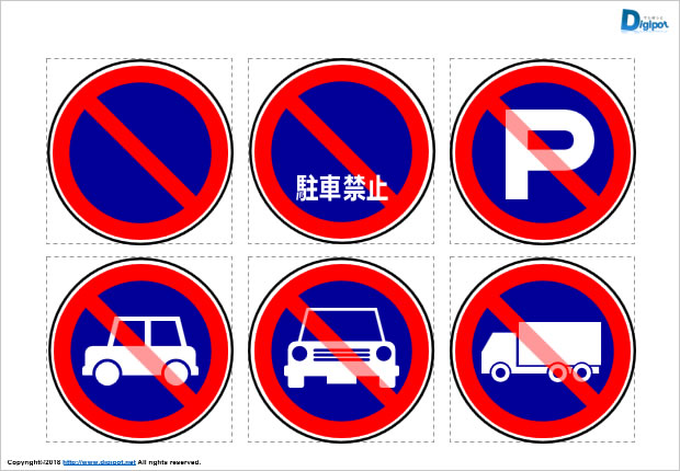 駐車禁止のシルエット無料のAi・PNG白黒シルエットイラスト。