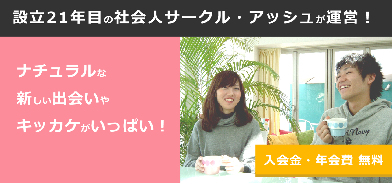 社会人サークル アッシュ 大阪 梅田・心斎橋・難波・天王寺自然な出会い30代・40代・50代婚活・恋活の社会人サークル。