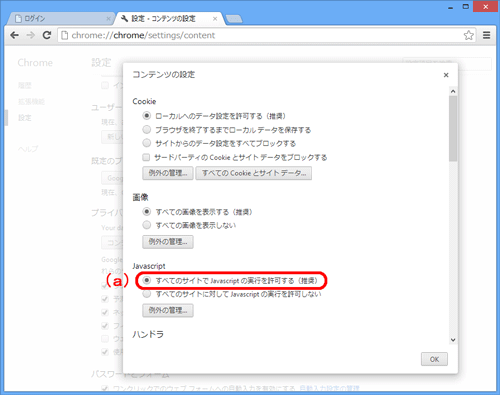 JavaScriptを有効にする設定方法 Chrome :BIGLOBE会員サポート。