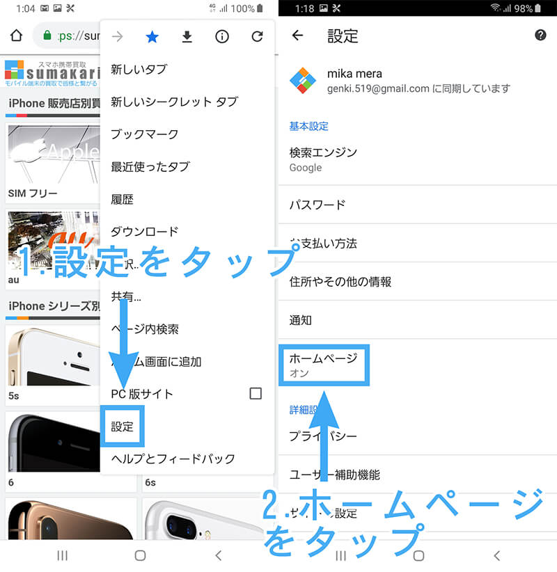 Chromeブラウザ スマートフォン Androidの設定方法。