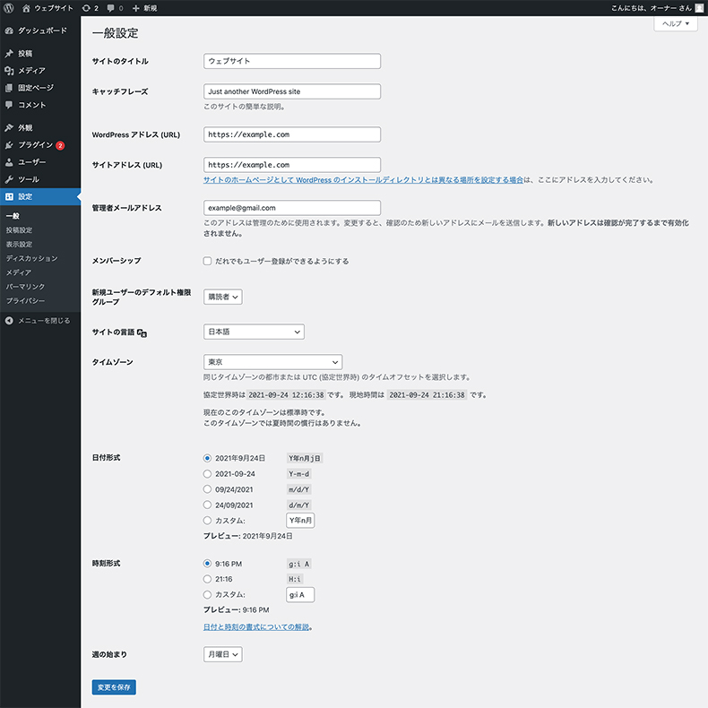 WordPressの一般設定でサイトの基本的な設定を行うワードプレステーマTCD。