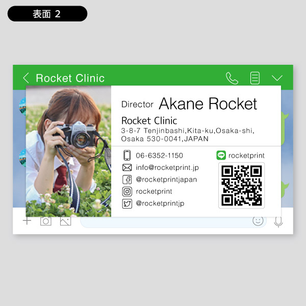 LINEアプリプロフィール横デザイン名刺印刷のロケットプリント。
