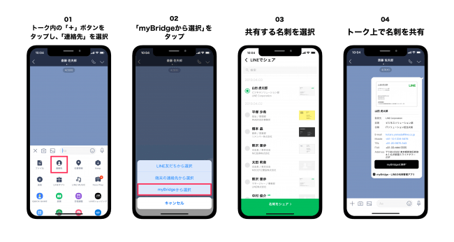 LINEの名刺管理アプリ「myBridge」、LINEのトークで簡単手軽に名刺情報が送れる!新機能の提供を開始LINE株式会社のプレスリリース。