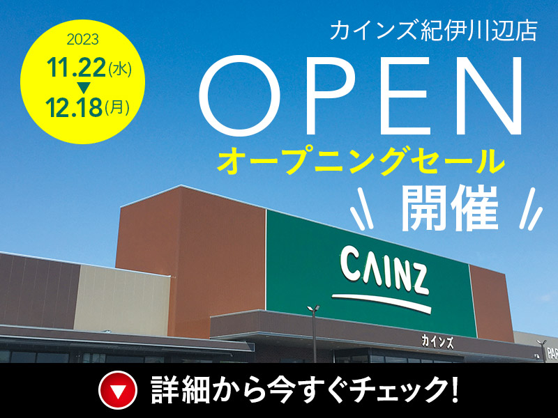 和歌山県初出店のカインズ紀伊川辺店 2023年11月22日 水 にいよいよグランドオープン!~オリジナル商品を中心に、生活必需品からサイクル、アウトドアまでお値打ち価格でご提供します~ホームセンターのCAINZ 公式企業サイト。