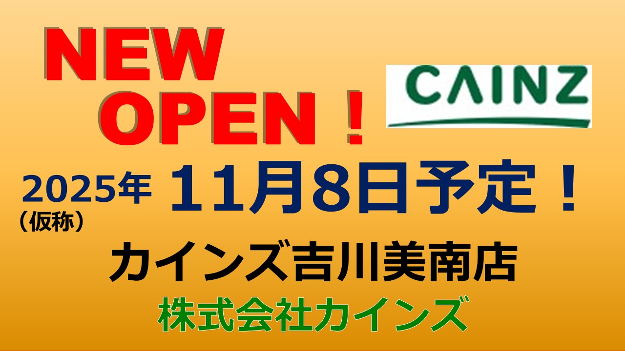 新規オープン 2025年11月8日仮称 カインズ吉川美南店規OPEN店舗の情報を紹介。