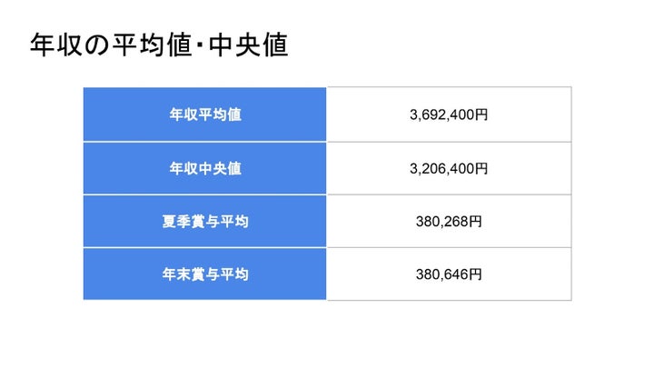 2022年最新 日本の「平均年収」「年収中央値」を調査 日本全体の平均年収は4,453,314円、中央値は3,967,314円期間工合同会社のプレスリリース。