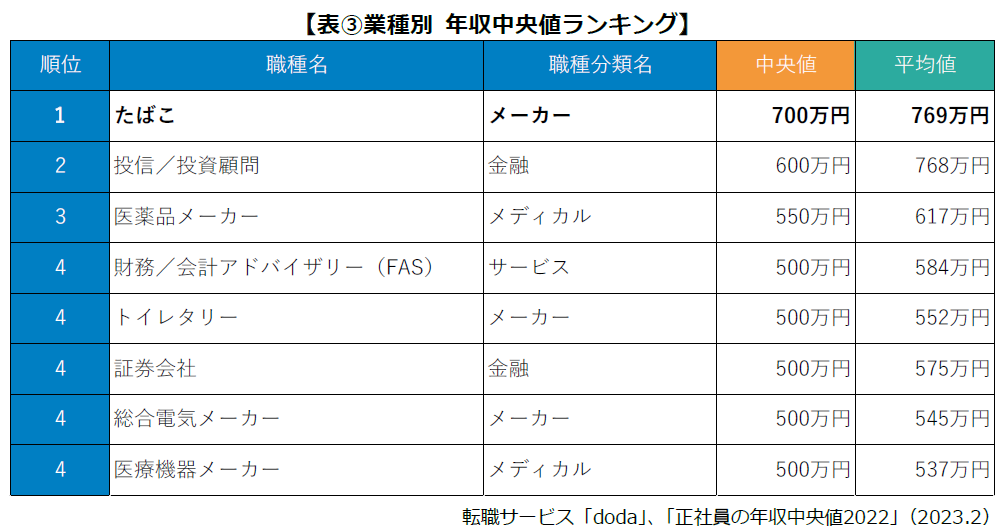 正社員の年収中央値は?男女別・年齢別・都道府県別にも解説 平均年収ランキング 最新版転職ならdoda デューダ。
