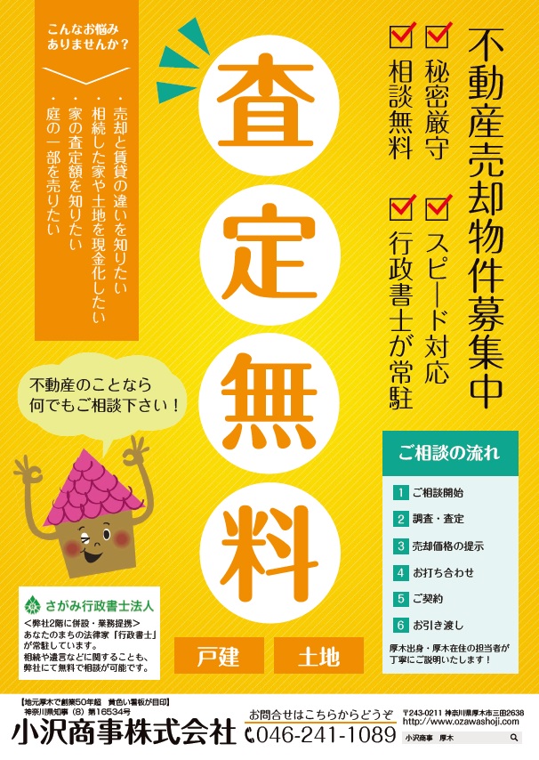 不動産売却物件募集中☆土地のみでも建物付でもお気軽に♪最新不動産情報 厚木市の不動産屋さん小沢商事株式会社。