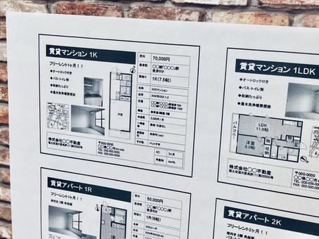 店頭の物件チラシが見やすくなりました株式会社Room's Bar。