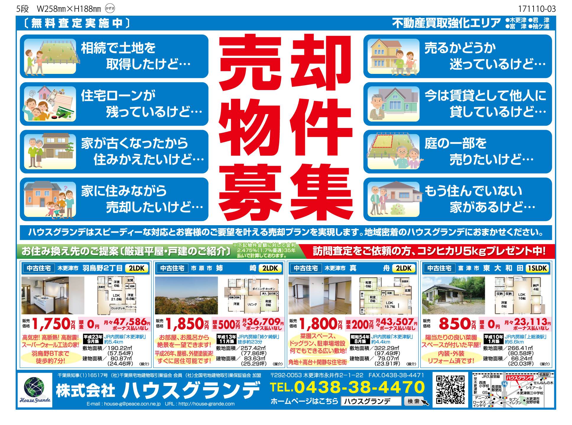 最新チラシ情報株式会社ハウスグランデ 木更津の不動産屋さん 売りたい!買いたい!の住まいの相談所!! 中古戸建 土地 木更津 君津 袖ケ浦 富津房総 家を売りたいお客様は是非ハウスグランデに!家を売るコツは良いパートナーに出会うことです!良質な不動産を扱う。