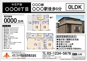 不動産会社 チラシ デザイン作成 千葉県船橋市名刺・チラシ・看板 印刷のプリント703千葉・船橋市。