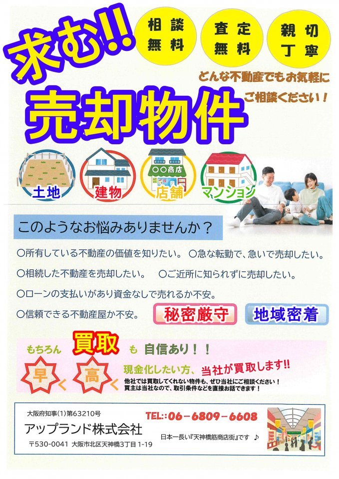 求む!売却物件大阪市の賃貸・売買ならアップランド株式会社。