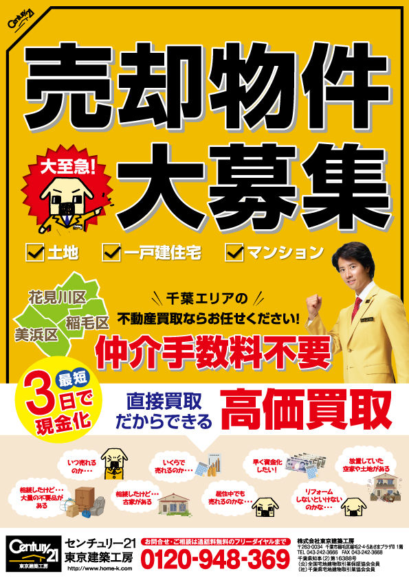 売却物件大募集の新しいチラシが完成 更新 ♪NEWチラシが完成♪センチュリー21東京建築工房。