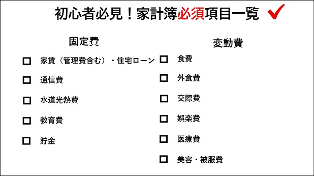 迷ったら見て 家計簿項目の一覧表・決め方 家計簿ビギナーさん向けmahiro life。