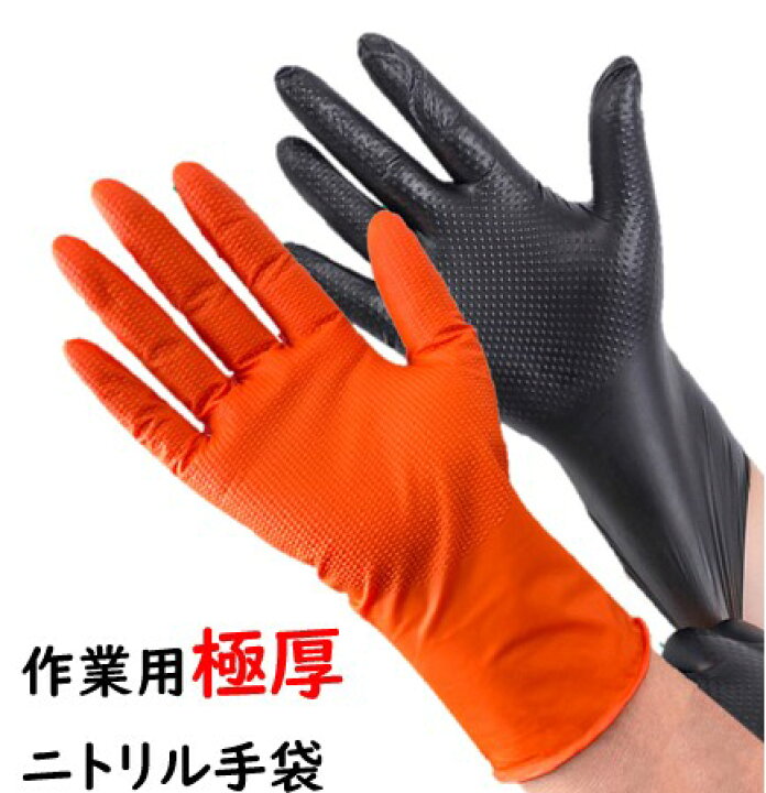 Amazon.co.jp:APALUXニトリル手袋 使い捨て手袋 厚手 工業用 作業用 ニトリルグローブ ダイヤモンド テクスチャード 強耐久耐油性 左右両用タイプ 強伸縮性 ゴム手袋 園芸 機械修理 油仕事 塗装 車整備 超強力グリップ オレンジ-100枚, M: 産業・研究開発用品。