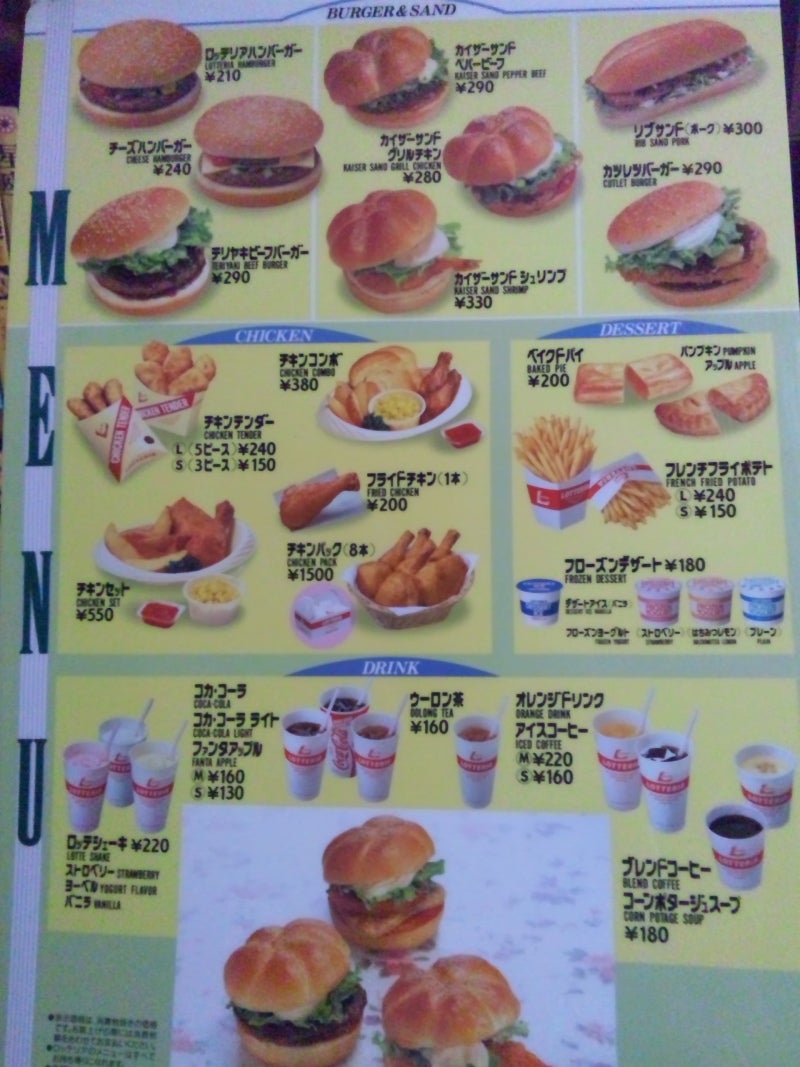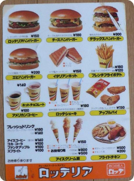 昔のマクドメニュー!!ロッテリアメニュー!!KITAIさんちの日記帳。