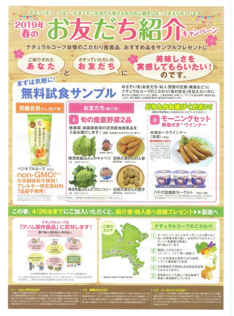 春のお友だち紹介キャンペーン 無料サンプル!選べるプレゼント! - 神奈川の生協「生活協同組合ナチュラルコープヨコハマ」。