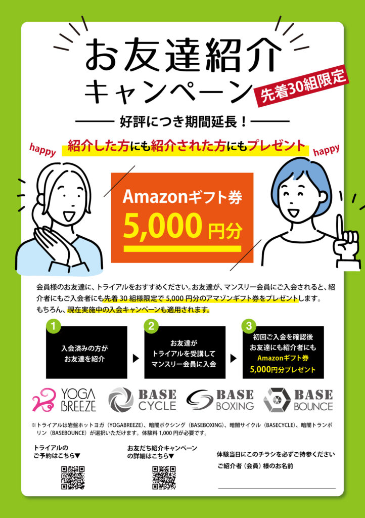 ベースボクシング-BASE BOXING-福岡の暗闇ボクシングフィットネス お友達紹介キャンペーン好評につき期間延長。