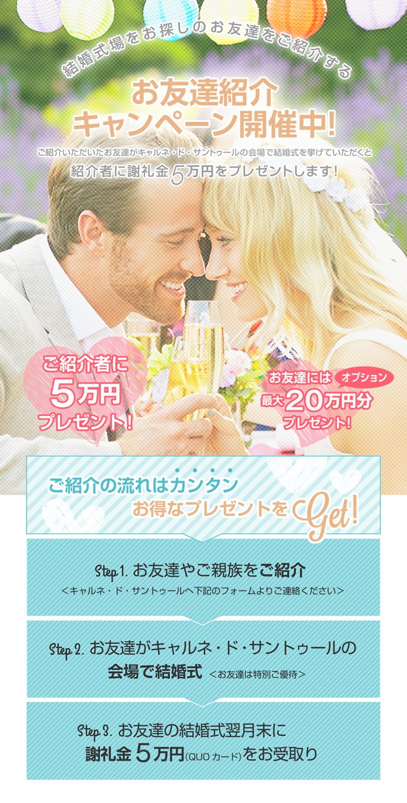お友達紹介キャンペーン - キャルネ・ド・サントゥール 銚子 結婚式場 The best reception Carnets de Senteurs。