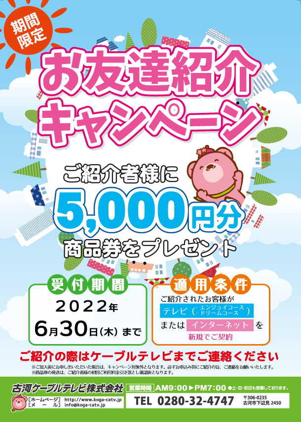 20220420お友達紹介キャンペーン チラシ古河ケーブルテレビ。