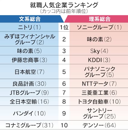 26年卒の就職人気ランキング、ニトリ・ソニーG首位 - 日本経済新聞。