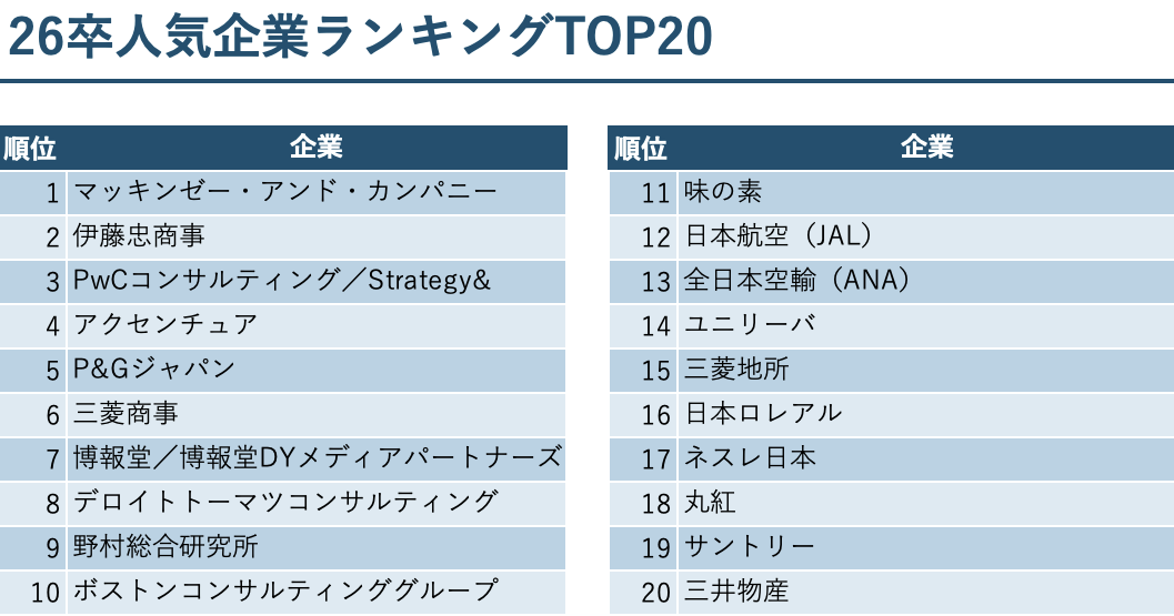 2026年卒「就職人気企業ランキング」を発表!トップは7年連続のあの企業。