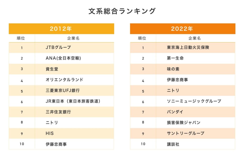 2022最新版 就活生に人気の企業とは!?10年前と比較し解説!ダイガクTIPS。