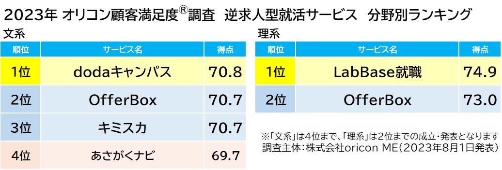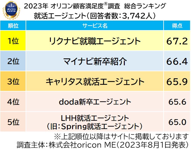 満足度の高い“就活サービス”ランキング オリコン顧客満足度®調査オリコン株式会社のプレスリリース。
