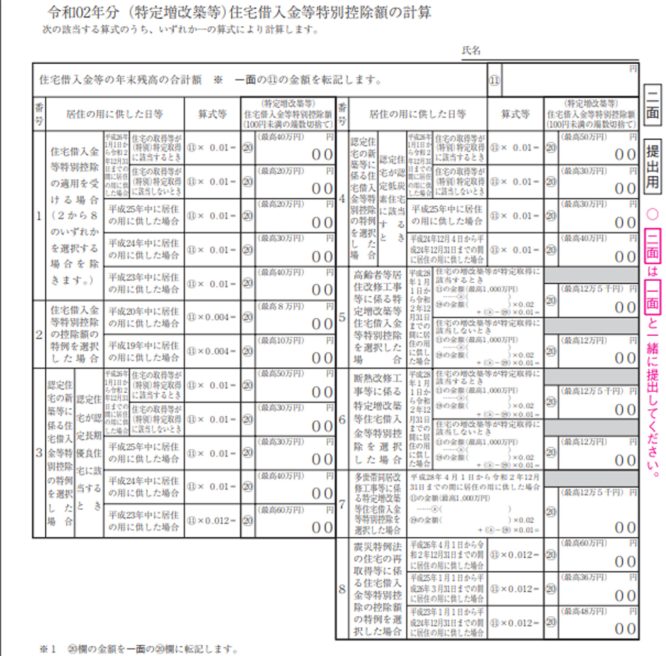 入力用PDF特定増改築等 住宅借入金等特別控除額の計算明細書 再び居住の用に供した方用令和2年分– らくらくPDF。