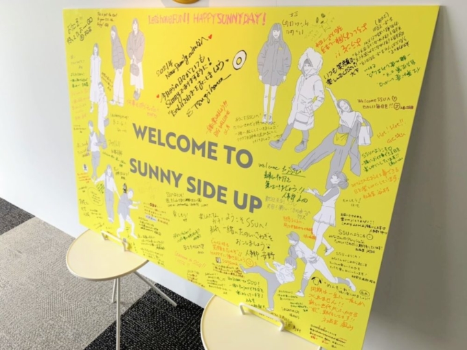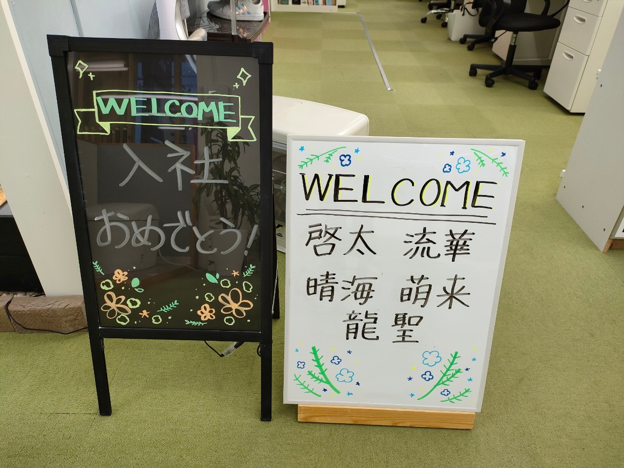 新人を迎えるウェルカムボード 新卒第6期生10名が配属: 24時間30cm以内に。