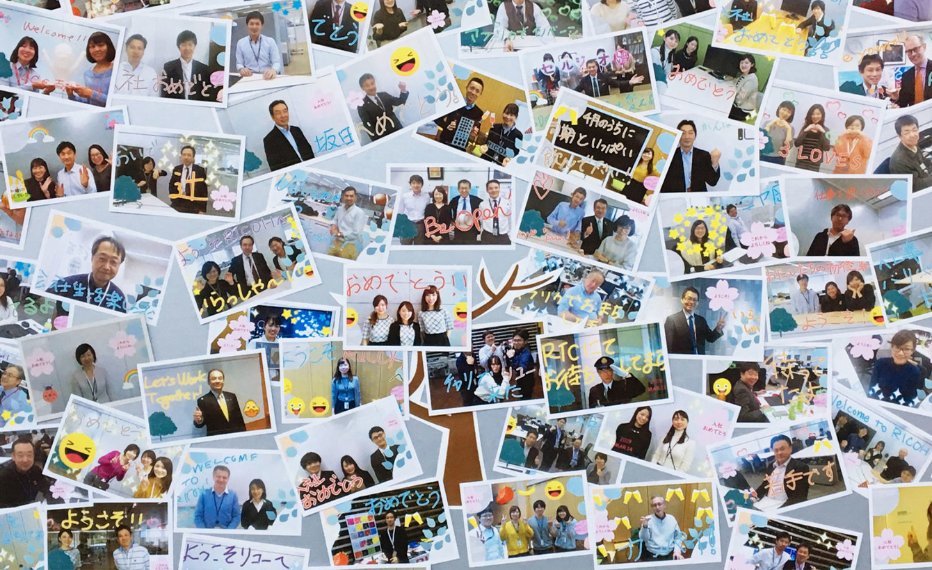 入社式のウェルカムボード~デジタルメッセージボード活用事例事例紹介RICOH Digital Contents。