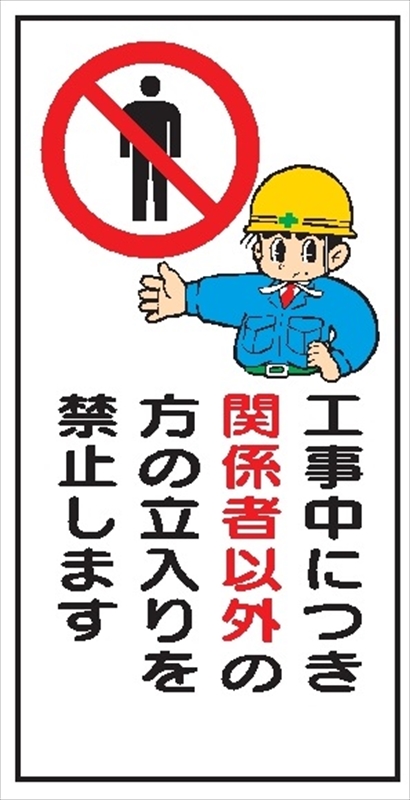 イラスト標識工事中につき関係者以外の立入りを禁止WN3 900mm×450mm マンガ標識保安用品のプロショップメイバンオンライン。