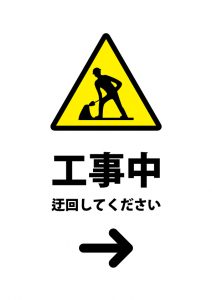 工事中につき右への迂回を促す注意貼り紙テンプレート無料・商用可能 注意書き・張り紙テンプレート ポスター対応。