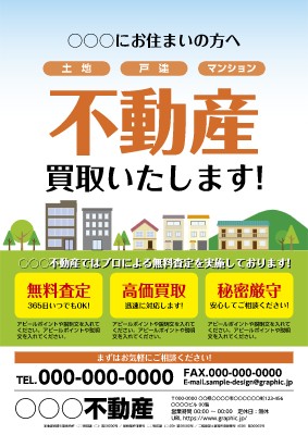 不動産買取_特売・キャンペーン・商品紹介チラシ・フライヤーの無料デザインテンプレート - ネット印刷グラフィック。