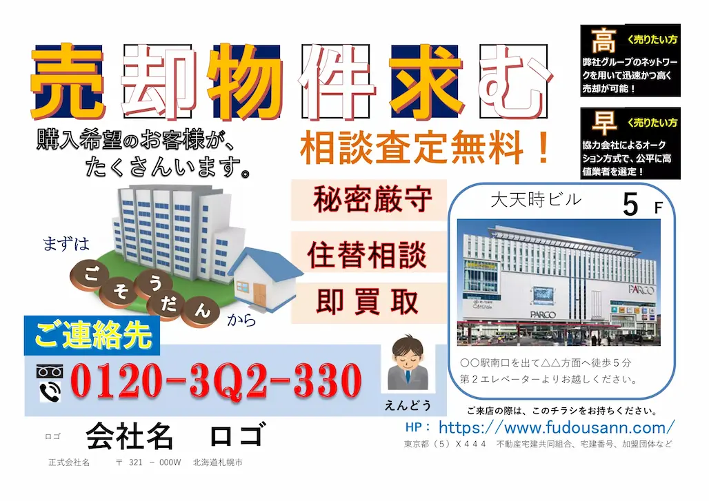 不動産売却特化!ポスティングチラシ・テンプレート<データ無料配布> -ブランディングテクノロジー株式会社ブランドを軸に中堅・中小企業様のデジタルシフトを担う。