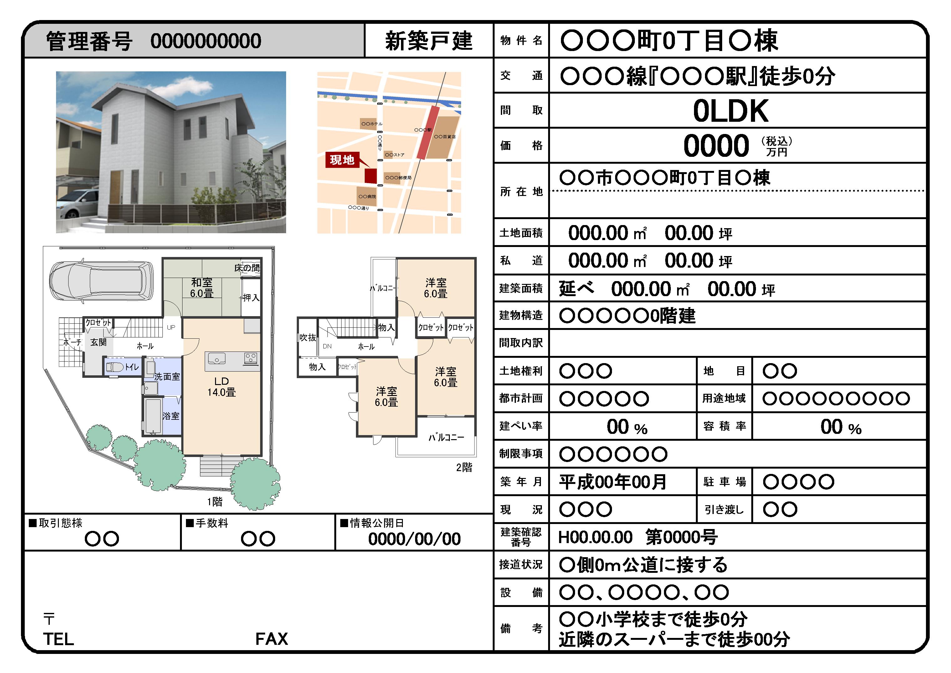 不動産チラシ・店頭掲示用・売買戸建-不動産チラシテンプレートのダウンロード。