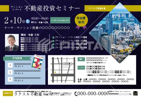 不動産_投資_セミナー_5113のチラシ・フライヤー無料デザインテンプレート印刷のラクスル。
