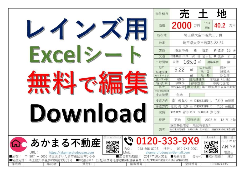 Excel_レインズシート 不動産 のテンプレート無料ダウンロード - 新作 無料ダウンロード エクセルのテンプレート。