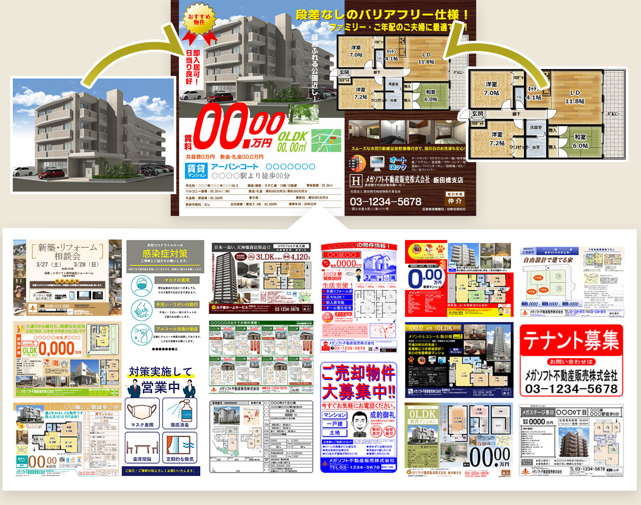 不動産チラシテンプレート商品案内総合広告代理店 株式会社イーライフ - 不動産広告にWEB広告、印刷広告を運営しております。