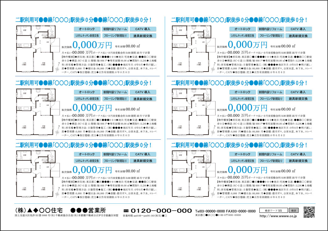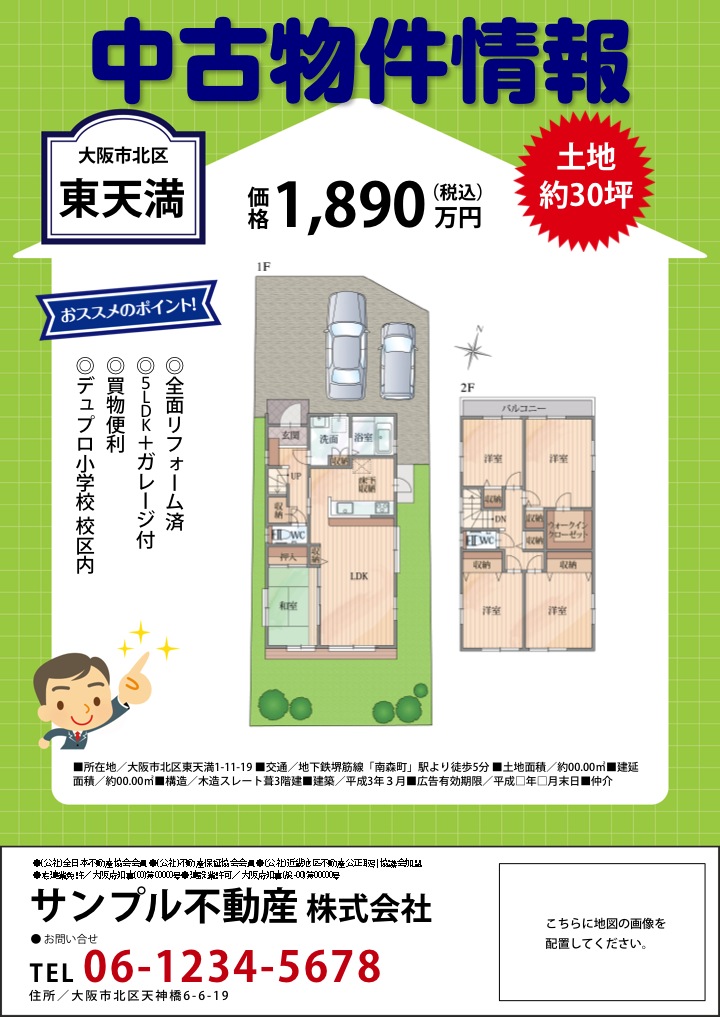 不動産中古物件売り出しの無料テンプレートチラシ大毎上町オリコミ 大阪の新聞折込チラシ広告ならお任せ。