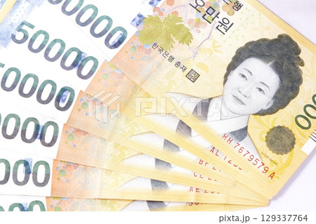 5万ウォン札の札束を数える女性 韓国経済イメージの写真素材55153188- PIXTA。