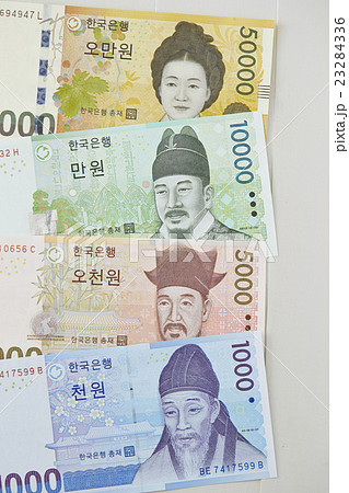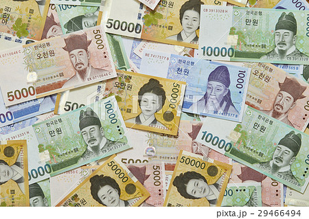 大韓民国通貨ウォン紙幣と韓国ウォンマークの写真素材44490856- PIXTA。