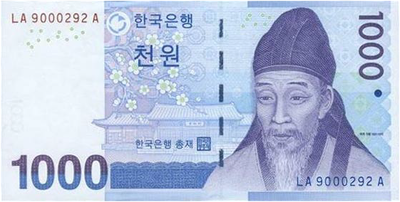 韓国の1000ウォン札に描かれている人物は誰なのかお札,紙幣,李滉,イファンてちゅんさるじゃ。