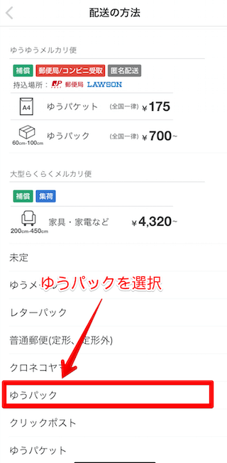 メルカリの配送方法には「らくらくメルカリ便」を使うか「ゆうゆうメルカリ便」を使うか。