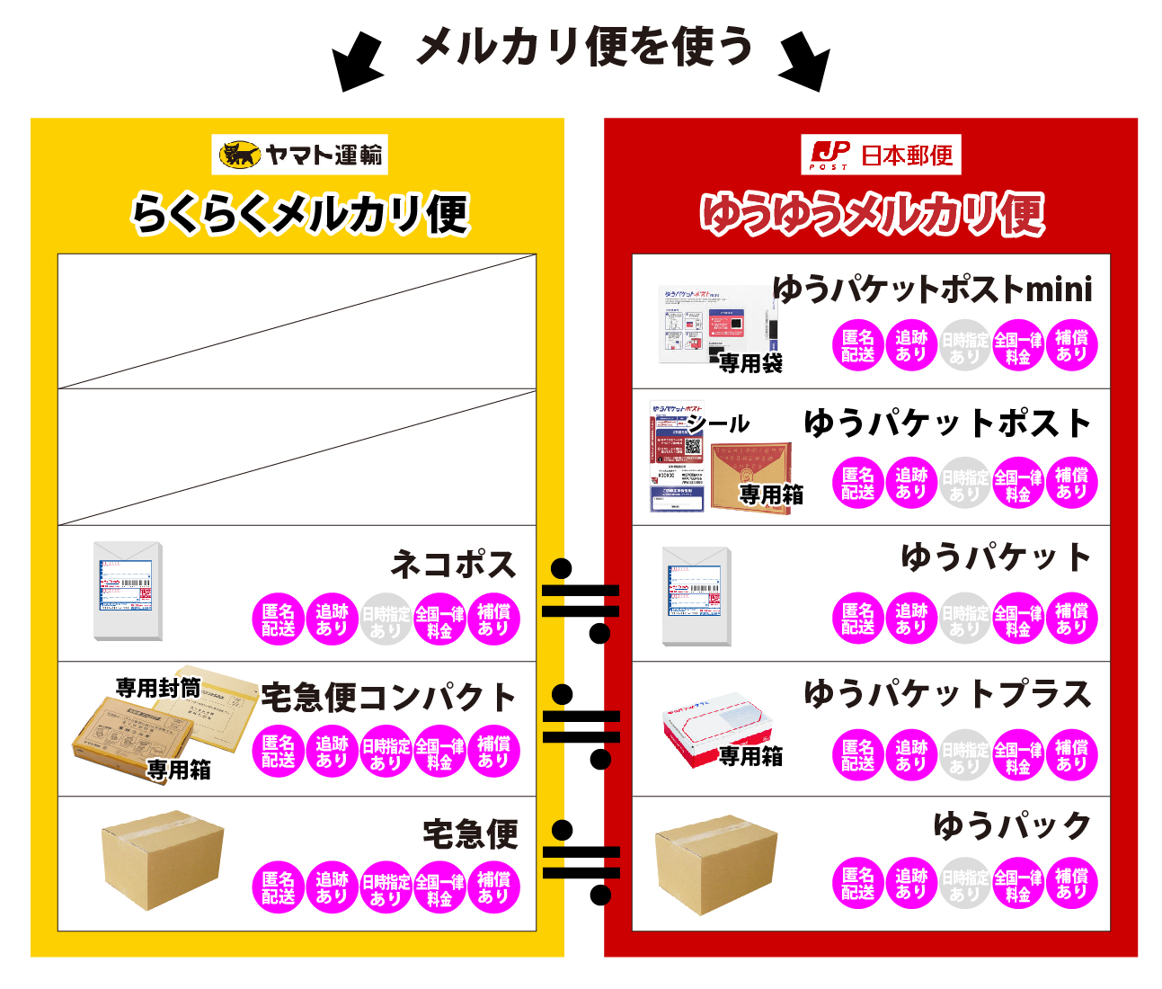 らくらくメルカリ便とゆうゆうメルカリ便の違いを徹底解説!サラせどコニシのせどりブログ。